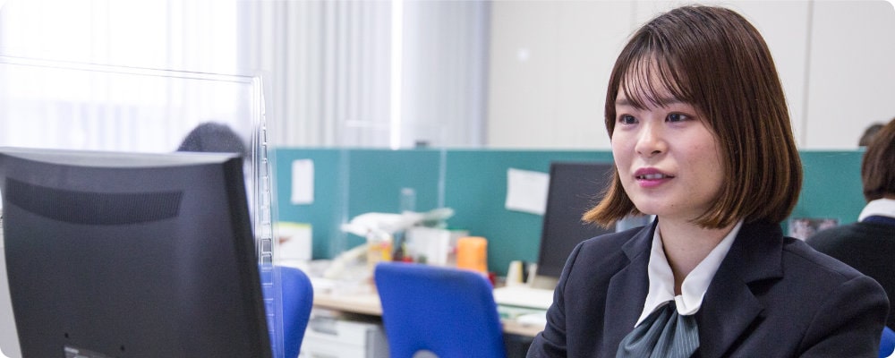 現在は庶務担当として社内業務を担っています。具体的には、入出金などの出納業務、小口現金の管理、経理の仕訳入力、顧客リストの管理、現金集金の計算、売上日報の管理、お得意先招待会などの準備やサポート、支店資料の作成、経費資料の管理などです。顧客数が多いので確認作業だけでも大変ですが、迅速かつ丁寧に進めるよう意識しています。